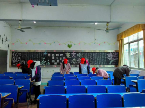 “校园是我家,美化靠大家”让我们以志愿者们为榜样,携手共创美好校园!