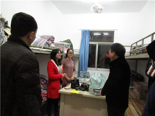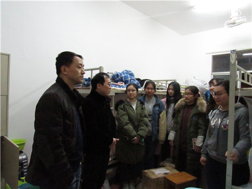 为了及时了解同学们的返校情况,表达老师们的关切之情,2月14日晚,基础医学院余朝阳书记,学生科、团委负责人,在各班班主任的陪同下,到学生寝室走访看望春节过后返校的学生。