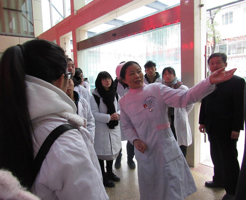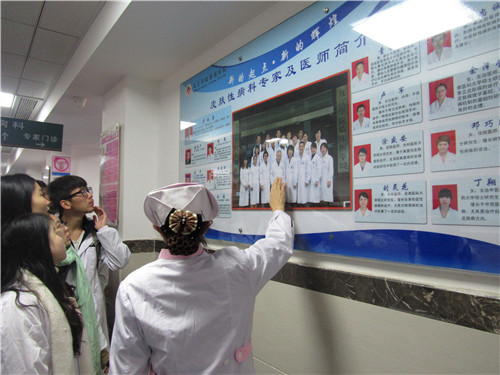 活动中,首先住院部的张秀芳老师带同学们参观了医院的住院部,她给大家详细介绍了住院部的各个楼层的功能,同时对将来同学们的学习环境与学生们进行了交流和解答。之后,由门诊部的蒋群老师带领大家参观医院的门诊部,她向大家介绍了附属医院的门诊专家以及附属医院皮肤性病所取得的成就。最后,由刘慧老师带领大家参观了临床技能中心,临床技能中心是将来同学们所要学习的地方,刘慧老师给大家介绍了一些基本医学仪器以及操作技巧。参观完临床技能中心后,大家在医院门口集合,安全返回浔东校区。