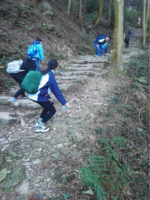 活动中,同学们在爬山的同时,随手捡起地上的垃圾并且扔进垃圾桶内,即使再累,也坚持完成了自己的任务。庐山优美的景色带给了大家前进的动力,身心的疲惫也因此而消散。从阴冷的清晨到阳光洒满山头时的正午,贫困资助小组的同学们以实际行动和愉悦的心情结束了此次活动。