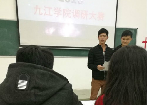 大赛中,各个班级调研大赛负责人耐心地向同学们一一讲述了自己的调研主题以及其意义,与此同时,也呼吁同学们在日常生活中多积累经验,将经验与所学知识结合起来进行问卷分析,并运用到实际行动中去。精彩的演讲更是让同学们赞不绝口。演讲完毕后,紧接着进行辩论环节,双方队伍更是滔滔不绝,讲述自己的主题,以及自己的优势。