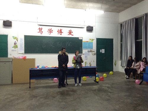 11月11日晚,浔东校区医友保健协会与语言交流协会在思贤楼阶五举行医友联谊活动,此次活动由医友社的王霞同学和语言社的高腾号同学担任主持,共50余位同学参加。