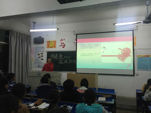 11月10日晚,基础医学院在各班固定教室召开"传递爱心,温暖你我"主题班会,班会由各班团支书主持,班级全体同学参加。
