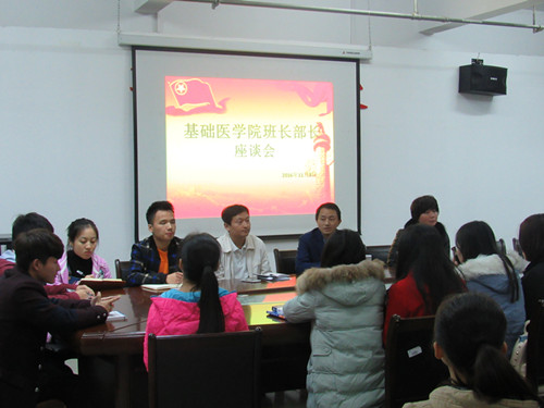 11月9日中午,基础医学院于华文楼105举行班长部长座谈会,基础医学院学生科科长何翠媛,学生科副科长张波,团委负责人姚中平老师,学生会干部以及大一大二各班班长参加此次讲座,此次讲座由学生科副科长张波主持。