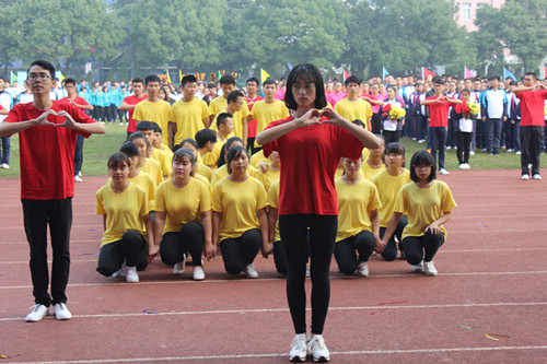 他们迎着旭日缓缓走来,整齐、有序的步伐中藏着无数的汗水,红道与之相识,绿茵为他们喝彩。基础医学院方阵由红黄两队组成,红色是中国的主色调,是五星红旗的底色,黄色是是五星的颜色,体现出基础医学院学生拼搏向上,热爱党,热爱祖国的精神。他们在主席台前跳起了欢快的舞蹈,摆出了九医和爱心的图案,这些充满韵律的波浪书写的九医二字,不仅代表了一种符号,更抒发了医学生的信念,以及对自身责任的理解与升华。红黄相间如番茄炒蛋引人瞩目,寒风也不能阻挡九院精英的热情,当双心涌出,围绕着洋溢着欢乐的同学们,她们青春,积极,活泼,可爱映入眼帘。最后他们喊出的“扬帆起航,劈波斩浪,看我九医,再创辉煌”的口号更是体现出基础医学院学子展现仁慈之心;健康所系,性命相托,志愿为医学事业贡献力量的决心。