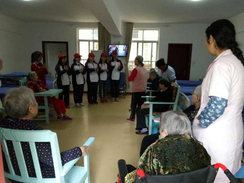 10月16日上午,基础医学院青年志愿者服务队到九江市老年福利服务中心开展以“最美夕阳红”为主题的敬老、爱老、助老活动。