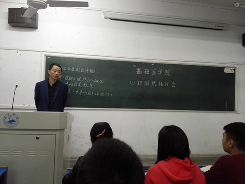 10月14日中午,基础医学院于思贤楼召开心理测试培训会,会议由基础医学院学生科副科长张波主持,相关带班助导参加会议。