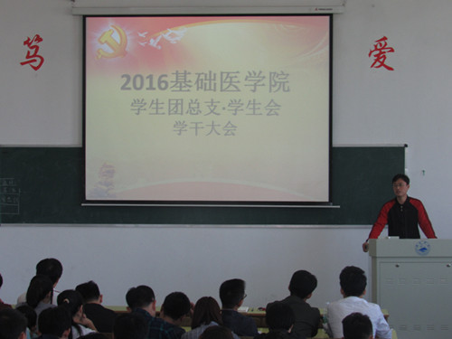 10月9日中午,基础医学院学生团总支·学生会学干大会于华阶二召开。基础医学院团委书记淦明南,学生科科长何翠媛,副科长张波,辅导员姚中平,学生会全体主席团及部长出席本次大会,2016级各班干、学干参加了此次会议。