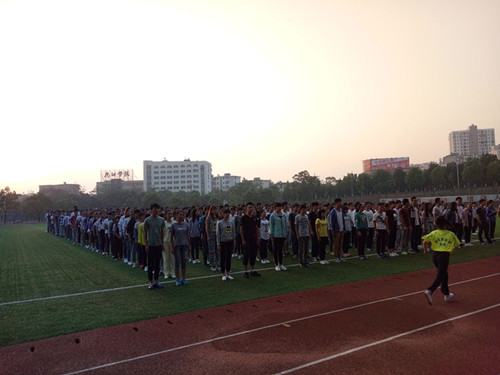 伴随着校园广播优美的音乐,同学们陆陆续续地赶到操场准备做操。6点35左右,各班级同学基本都到达自己班上的指定位置。