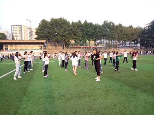 到达操场后,同学们自觉按体操队形散开,随即开始进行早操锻炼。虽然同学们都入学不久,但是同学们都尽力做到标准、统一,在集体做完操后,有的班级还自行组织训练,由此可以看出同学们积极向上的态度以及班级集体荣誉感。