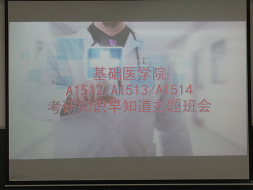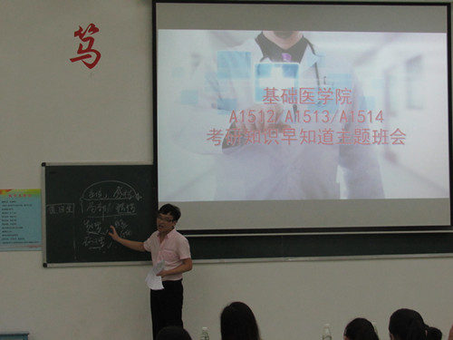 | 为了让同学们对考研有更进一步的认识,提前做好相关准备,9月9日晚,基础医学院邀请医院方富、左玮老师于华阶二为临床A1512、13、14三个班的同学们进行考研知识宣讲并解答疑问。   活动中,方富老师为各位同学介绍了一些个人建议,第一,应该培养兴趣,向自己感兴趣的方面进行学习;第二,制定目标,树立理想,为今后的学习找到一个奋斗的方向;第三,提出了解剖、生理、病理这三门学科对今后学习的重要性,在学习的过程中注意方法,也说明了诊断学是成为一个医生的必要条件;第四,在大四和大五期间要有一个明确的目标,学习的历程中也要注重换位学习和学习方法,此外还着重说明了英语的重要性。接下来,讲解了大家关注的问题"考研",方老师认为考研之路应该注重三点:“订好目标”、“专注学习与复习”、“报考攻略”。  接下来,左玮老师为大家重点传授考研的一些方法与经验,他提出了自信是考研的基础,考研也可以开拓眼界,因此,他围绕了“研究生种类”、“考研与平时成绩的关系”、“如何准备考试”、“关注理想学校”、“考上之后如何准备面试”以及“如何选择导师”这几大方面进行了详细的阐述。  此次班会让同学们更进一步的了解了关于“医学生学习”、“考研”这两大方面的知识,也让每位同学更加明确了今后的学习目标! |