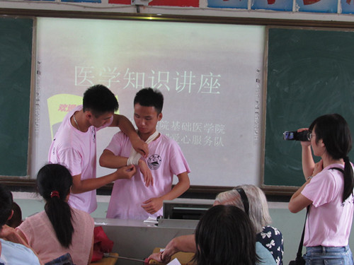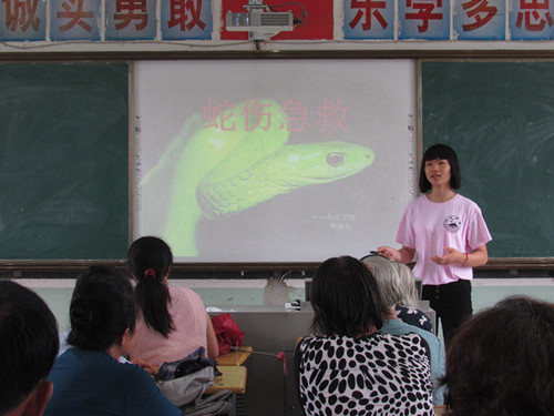 为了更好的让同学们学以致用,爱心医疗服务队举办了医学知识系列讲座。讲座内容涉及日常保健,蛇伤处理,以及急救知识。演讲采取互动的形式,村民们向同学们列举生活中的例子。同学们加以收集,延伸,并进行概括和归纳,最后进行直观演示。活动也得到了马回岭中心医院的大力支持,服务队将演讲与医院的义诊相结合,我们为到来的村民们进行了义诊。同学们也把位于马回岭中学的义诊现场当做了另外一个课堂,向医生们学习临床经验。