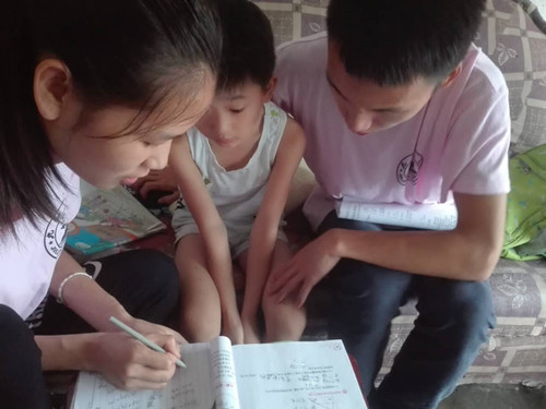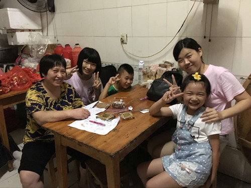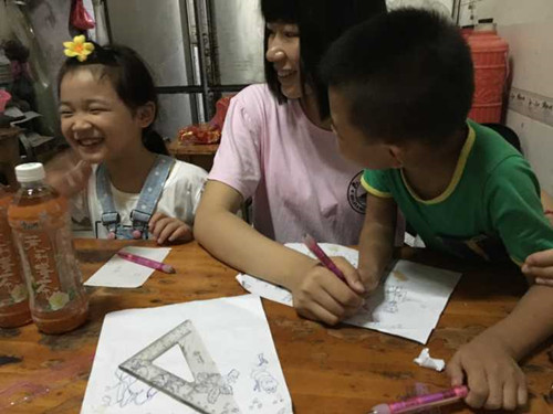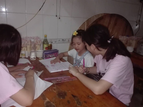 当天下午,队员们分成五个小组到街道,找到适龄的小朋友。在与家长沟通之后,到孩子家中,和他们一起互动。队员们耐心地为小朋友讲解疑难问题,教会他们举一反三。完成作业之后,队员们教小朋友们折纸、画画,和他们一起做游戏,气氛十分融洽。小朋友们认真听讲,从开始的害羞,到与哥哥姐姐们畅谈一些有趣的话题,与此同时,家长们也很欢迎服务队同学们的到来,带着孩子和队员们合影留念。乡亲的热情与小朋友的可爱,都让服务队留恋不舍,而且乡村留守儿童暑假没有城市里的一些游乐园,只能呆在家里,因此,我们也希望尽自己的绵薄之力为孩子们带去更多的快乐。