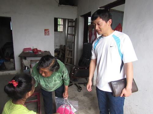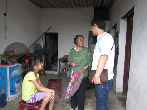 | 走访留守儿童 关注儿童成长 为奉献社会,关注、关爱留守儿童,7月4日下午,基础医学院暑期“三下乡”爱心医疗服务队带队老师姚中平在马回岭敬老院秦院长的陪同下,到马回岭当地一些留守儿童的家中进行走访慰问。     活动当天虽然下着大雨,当却丝毫不能阻挡我们前行的脚步。此次关心、关爱行动一共涉及到四户家庭,在走访过程中,我们了解到,这些留守儿童都是因父母外出打工挣钱而被留在家中与爷爷奶奶们一起生活,虽说家境较为贫穷,但是,他们却是人穷志不穷,经过询问后我们得知,他们都是在学校刻苦学习、努力读书的好孩子,学习成绩在学校也是名列前茅。为了表示对他们生活的关心以及对他们的学业给予支持,我们送出了书包、乒乓球拍、羽毛球拍、笔记本、文具等慰问品,同时,带队老师姚中平老师也提出殷切的期盼,他说,希望留守的孩子们能够继续努力,好好学习,将来考上理想的大学以报答亲人们的养育之恩。而孩子们的家长对我们的关心表示最衷心、诚挚的感谢。    所谓“少年强则国强”,此次走访活动体现了我院对当地儿童的关心,也体现了学院对教育事业的重视。而对于我们服务队的同学们来说,这也是一次爱心传递,愿这支爱心火炬能够薪火相传! |