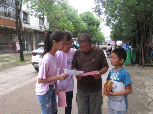 伴着微微细雨,志愿者们手拿宣传单,满怀热情地走在马回岭镇的街道上,为沿路的居民们耐心地讲解一些相关的医学健康小知识。宣讲的内容主要分三大块:医学保健知识、心脑血管疾病的发生与预防措施、九江学院基础医学院的简介(包括师资力量和专业特色等)以及向高考生讲解如何填报我校志愿。在讲解过程中,志愿者们都能够灵活运用自己所学的专业知识,为其讲述一些常用的医学小知识,比如:正常心率,正常体温等等。同时,考虑到许多老人家的身体状况,大家还向他们详细介绍了心脑血管疾病发生的原因以及怎样通过科学饮食来达到预防此类疾病的方法。听完我们的讲解之后,居民们都感到非常的满意,并对我们举办此类活动给予了大力支持和良好评价。