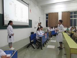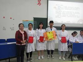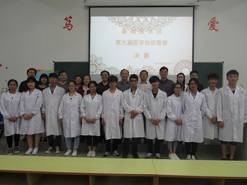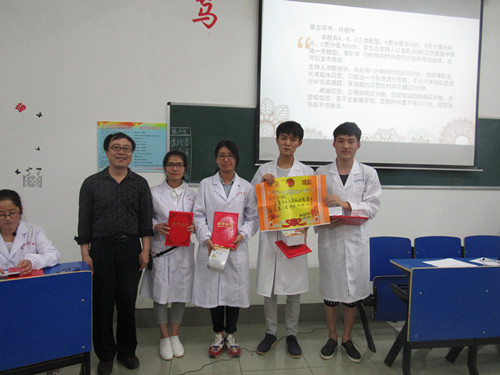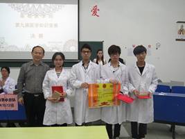 | 为了强化同学们的专业知识,增强同学们的对医学学习兴趣,5月18日晚,基础医学院于华阶二举行第九届医学知识竞赛决赛。基础医学院院长车向新,党委书记余朝阳,副院长郑美蓉,院办主任李美秀,特邀嘉宾解剖教研室主任傅文学,以及全体辅导员、班主任到场观看本次比赛。    经过初赛、半决赛的激烈角逐,三支代表队进入最终决赛。此次比赛共五个环节:你问我答,争分夺秒,心有灵犀,各抒己见以及最后的终极PK环节。在前两个环节中,充分体现了选手们丰厚的知识积累和临场的变通能力;心有灵犀环节考验的是团队之间的合作与默契,而最后的两个环节考验的则是选手们的语言组织能力和风险承受能力。  竞赛中,各代表队选手思维敏捷,知识运用娴熟,回答问题镇定自若。比赛一开始就显示出各队的实力,经过前两轮环节比赛,场上比分难分高下,台下观众也看得兴致昂然,整个比赛过程紧张不失活泼,赢得现场一波又一波热烈的掌声。  解剖教研室主任傅文学老师针对各抒己见环节各代表队对医患关系的陈述作了精彩点评。他赞扬了作为一名医生的伟大与奉献,并呼吁我们通过友好的沟通去舒缓当今紧张的医患关系。  随后,车向新院长作总结性讲话。他首先肯定了本次比赛的创新环节——各抒己见中的视频环节,通过视频让我们学习到了作为一名医生的奉献精神和责任感。其次,他说,医学应该是一个较为广博的专业,他建议比赛的题目内容视野可以更加开阔一些,同时,他也对组织医学知识竞赛辛苦付出的老师和同学表示了感谢。     经过紧张激烈的角逐,B1513班代表队获得冠军,A1572班代表队获得亚军,B1511班代表队获得季军。院领导为获奖队伍一一颁奖,并合影留恋。 |