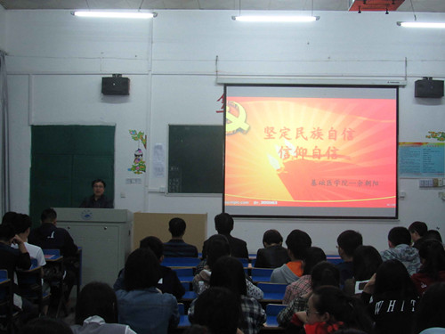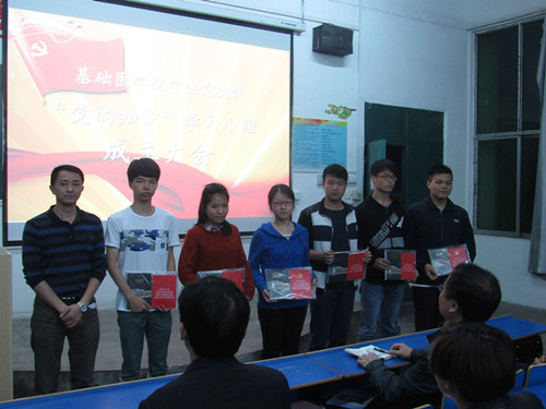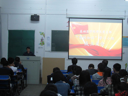 | 为进一步学习党的理论知识,加强自身思想道德建设,5月15日晚,基础医学院于思阶五召开“两学一做”学习小组成立大会暨党课辅导报告会。学生党支部书记张波、支委委员、全体辅导员、预备党员及入党积极分子参加此次会议,会议由基础医学院学生会团校姜甲奇同学主持。   基础医学院党委书记余朝阳以普通党员身份参加自己所联系的学生党支部的活动,并为全体学员和学生党支部成员讲授党课,他以坚定民族自信,信仰自信为主题向大家讲述做一名合格党员的关键:首先要做一名合格学生,要做一名合格的老师,要做一名合格的公民,再争做一名合格党员,把学习融入自己的实际生活和工作中,学习要接地气,要落到实处,要结合所学专业以及学校三大特色教育来开展和深入。随后余书记以独特的视角,从当前国际国内形势入手,透过当前社会上存在的几种普遍现象以及人们潜意识当中的思想认识倾向,分析了其成因及根源,并作出了精彩的论述,提出了我们在思想建设中的应对之策。余书记在党课结束时对大家提出了三点希望:一是希望大家作为高校的老师和学生,一定要率先构筑起我们民族的精神长城,要多读古今中外的历史,要善于用怀疑辩证的眼光来辨析事物和表象,要善于继承和发展我们中华民族的优秀传统文化,树立起以民族自尊为基础的民族自信。二是希望作为一名党员和入党积极分子更要对党的历史、党的奋斗历程、党的宗旨和性质等有一个清晰的了解,这样才能更为坚定对党的信仰,坚定对自己信仰的自信。三是希望同学们要以对民族信仰和对中国共产党信仰的自信来引领自己以后的学习、工作和生活,为中国共产党的发展壮大,为中华民族实现复兴的伟大中国梦而努力。  余书记的党课引起了全体听众的共鸣,激起了大家对民族精神及文化传承的重视及反思,也进一步激发了同学们学习党章党规、学习习近平总书记重要讲话,争做合格党员的热情和信心。   会上,学生党支部书记张波宣布党支部学习小组正式成立并介绍了党小组学习任务安排,强调要遵守学习纪律,并祝大家在学习上取得效果,在思想和行动上都得到提高。学习小组组长曹锐宣读党支部各个学习小组的名单,入党积极分子代表穆欣和预备党员代表曹锐分别作表态性发言,并汇报各自应如何学习党的理论知识,发挥学习模范作用,在思想上和行动上做到真正入党。   通过此次会议,大家认识到要以饱满的热情投身于学习党的理论知识和实践,并把学习成果融入生活和工作,不断地向党组织靠拢。 |