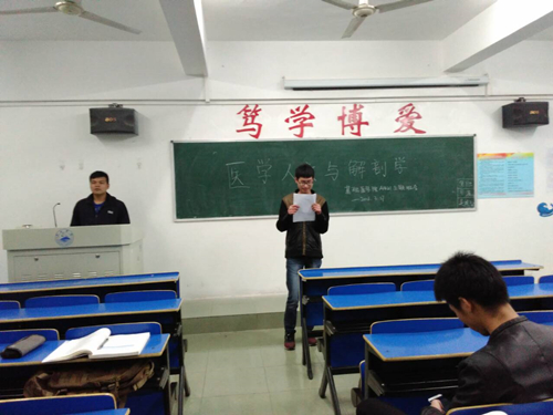 | 3月27日晚,基础医学院A1421定向临床班级于华文楼召开了“医学人文与解剖学”主题班会,此次班会由班长曹锐同学主持,全体同学到场。  会上,同学们畅所欲言,各自讲述了自己对解剖学与医学人文的看法和观点,其中有人将医学人文比喻成两把柳叶刀,一把在手中,游刃于生物学意义的生命躯体之上,一把在心中,游刃于思想史意思的医学体之上,引入哲学审视,引出人文反思。接着,同学们听完这位同学的发言后,纷纷鼓掌表示十分赞同。随后,也有同学说道,解剖不仅是医学课程的基础,也是医学人文教育的基础,即医学人文与系统解剖学相互交叉、融合,也将成为人文解剖学。这意味着解剖学对于我们医学生来说,是一门重要的学科,只有将其学好学精,才能谈及医学人文。  此次主题班会,旨在让同学们明白,解剖学和医学人文之间的联系密不可分,唯有将两者紧密结合并运用到我们今后的临床工作中,才能突显两者的真正含义。 |