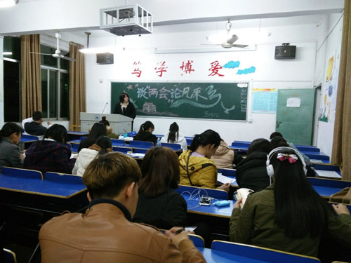 | 为深入学习和贯彻两会精神,3月17日晚,基础医学院B1512班举行“谈两会,论风采”主题班会,B1512班全体学生参加此次会议。  班会上,团支书不仅给同学们宣传两会的相关知识,还介绍本届两会的讨论热点和决策。而后,同学们就重点关系民众生活的话题展开热烈地讨论。  会上,同学们认真思考,并对于大陆和香港关系之间的问题、电视剧网络剧的监管管理问题以及平常生活上经常出现的网购等问题谈了自己的看法。从会议的讨论情况我们可以看出,同学们都做好了充分的准备,同时,也有不少同学在听讲中详细记录笔记。 本次主题班会的召开,让同学们更加了解两会内容、学习两会精神,以此培养同学们关心国家大事的感知力。 |