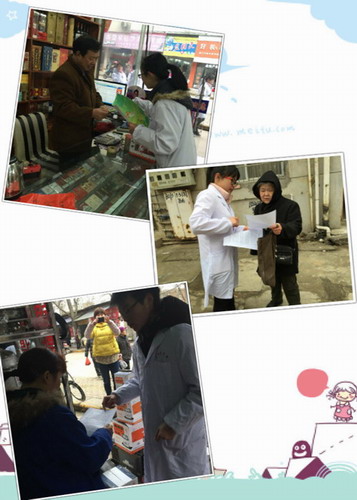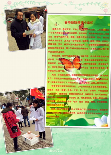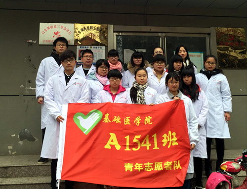 | 为进一步弘扬雷锋精神,3月12日下午,基础医学院A1541班15名同学在三里街服务社区举办“快乐预防,健康你我他”社会实践活动。   活动前,同学们利用课余时间精心收集了相关信息,并打印了150份“春季疾病预防小常识”的宣传单。活动当天,天气转冷,北风呼啸,可这丝毫影响不了同学们为民服务的热情。同学们身穿白大褂,在社区主任的带领下,走进社区,他们呼吁过往的市民参与进来,并用自己的专业知识为市民讲解春季预防疾病小常识,耐心地回答了市民提出的相关问题。活动结束后,部分市民与同学们合影留念。   此次社会实践活动,让更多的市民了解到,在春季预防疾病不仅要注意衣物的增减,饮食清淡,还要注意锻炼身体,给身体打一剂“预防针”。与此同时,同学们也在无偿服务中,体会到雷锋精神的深层含义,希望此后,同学们能够将这份精神永久的传承下去,为创建一个更加美好而又和谐的社会做出自己微薄的努力。 |