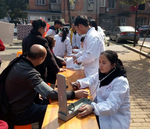 | 3月13日,基础医学院B1562班同学来到南湖社区开展“走近社区,天使在行动”志愿服务活动,此次活动内容主要是为社区居民免费测量血压。   活动期间,大家分工明确,配合默契。一部分人为居民量血压,一部分人给居民发放预防疾病的宣传单,并耐心的向他们介绍了预防疾病的小知识,受到了居民以及社区主任的一致好评。活动结束后郭主任说,希望今后同学们可以经常去他们的社区,给居民们带来更多健康知识和温暖。   此次志愿服务活动的开展,不仅增强了社区居民们的健康意识,还有助于同学们提前感受社会,增强服务意识,也促进了班级的凝聚力,增进了大家之间的感情。 |