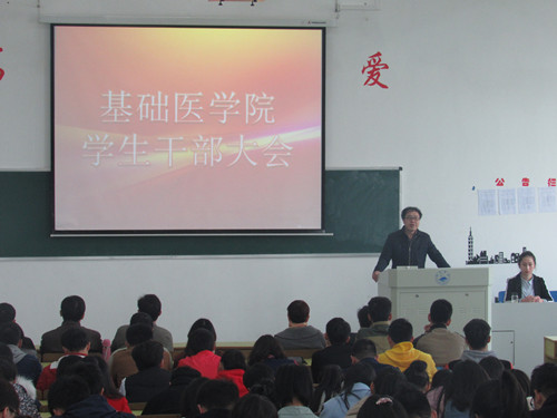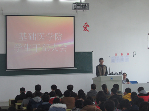 | 3月3日中午,基础医学院在华文楼阶二召开新学期学生干部教育大会。基础医学院党委书记余朝阳,学生科、团委负责人,学生科老师以及全体学生干部参加此次大会。   会上,余朝阳书记就基础医学院在2015年获得的“九江市五四红旗团委”、九江学院“优秀基层党委”、“全员育人先进单位”等荣誉和成绩,代表学院党委、行政及全院老师们对全体学干的支持和努力表示感谢,新学期他对全体学干提出四点新希望:一要把握和珍惜当学生干部的机会,培养自己的能力,做出自己的贡献;二工作要学会抬头看天,低头做事,关注周边;三要敏感,无论是对校内还是校外,知道自己什么该做,什么不该做;四要做好表率,当好“旗帜”,并成为老师的得力助手。    学生会执行主席陈德财介绍了学生会各部门负责人的选拔方式,即以自荐信的方式面向全院学生公开竞聘选拔。随后,学生科副科长张波就我省新发布的《江西省学校学生人身伤害事故预防与处理条例》作报告,对《条例》进行了详细解读。团委书记淦明南就新学期学生干部工作的开展对学生干部们提出了“三个三”要求以及六点希望。“三个三”即三个方面作用、三个应有素质、三个应具能力。三个方面作用为核心骨干作用、桥梁纽带作用、模范带头作用;三个应有素质为有较高思想觉悟,能够从思想道德、文化方面加强自身修养,有大局观、服从与反馈、倾听三种意识;三个应具能力为行动能力、学习能力、包容能力。希望学生干部能够积极奉献、乐于服务,严于利己、以身作则,一身正气、公正待人,明确职责、有高度责任感,注重学习、掌控时间,做好传承、发展创新。   此次大会的召开标志着2016年新学期学生干部工作的全面展开,并为新学期学干们的工作指明了方向,开创了工作新局面。 |
