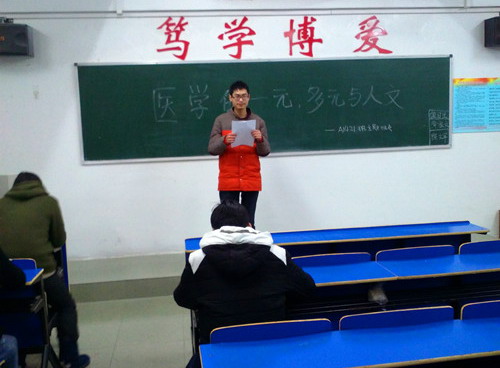 | 12月6日晚,基础医学院A1421定向班于华文楼301召开“医学的一元、多元与人文”主题班会,班主任何翠媛老师以及全体同学到场。  班会主要围绕着医学的一元、多元与人文之间的关系展开,医学的一元是一种意识形态的关于医学的观念,而多元则是多种意识形态的关于医学的观念。同学们都表示,二者的区别犹如中医与西医区别,两者之间并没有什么优劣之分,双方都有各自的优点和缺点。期间,同学们都认真积极地参与讨论并表达自己的观点意见,最终,班会顺利结束。 此次班会旨在让同学们明白,要成为一名好医生,要时刻提醒自己,做好积累和完善是对病人最好的保证,以促进自己与人文精神的结合。 |