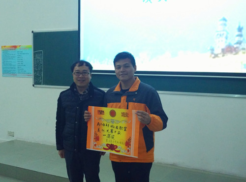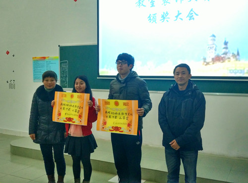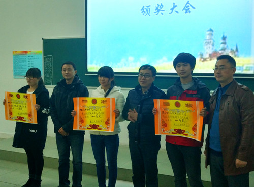在热烈地掌声中,参加会议的学院领导和老师为获奖的班级和寝室颁奖。