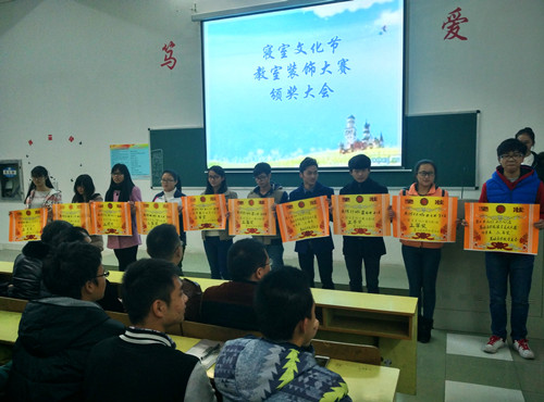 为表彰此次“寝室文化节,教室装饰大赛”较为突出的寝室和班级,促进班风建设,11月30日晚,基础医学院于华阶二教室举行“寝室文化节暨教室装饰大赛”颁奖大会。基础医学院党委书记余朝阳,学生科、团委负责人,全体辅导员,各班学生代表参加大会。