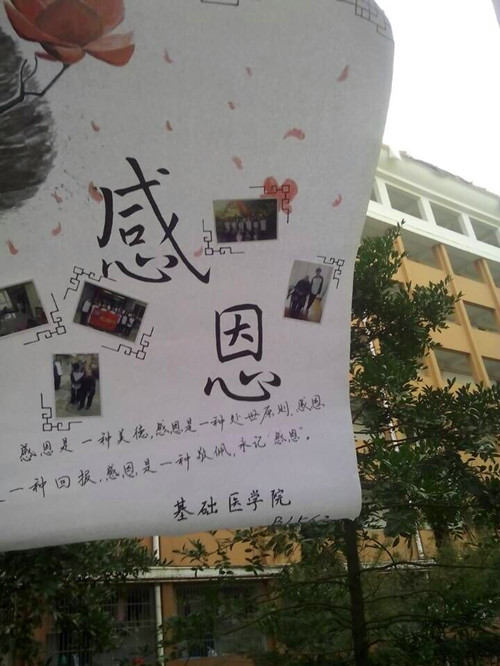 感恩,是一种美德。为了让每个学子都学会感恩、心存感恩,体会感恩给予我们的生命意义,11月27日,基础医学院学生会社会实践部在欧风园开展了以“感恩”为主题的海报展活动。