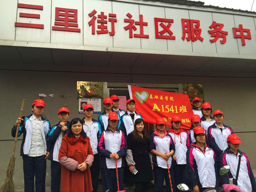 当天上午,同学们在浔东校区田径场上表演《感恩的心》手语,让感恩在九院传播,深入同学们心中。下午,同学们在欧风园集合,由班级团支书带领同学们去三里街为社区打扫卫生,铲除小广告等。同学们在社会中传播感恩,让人们感受温暖,将这份温暖传递下去,将感恩之心深入人心。此次社会实践活动在每位同学灿烂的笑容中,划上了圆满的句号。