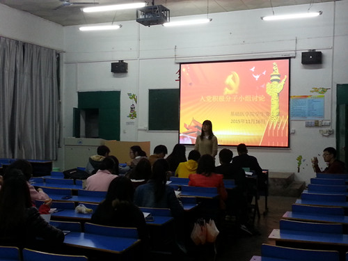 | 11月16日下午,基础医学院于思贤楼阶梯教室五召开入党积极分子小组讨论会,全体入党积极分子培训班学员参加会议。入党积极分子们每五人为一小组,进行组内讨论。  讨论过程中,同学们分别讲述了自己对中国共产党的认识和入党动机以及对党的认识和理解,并表示自己会持续关心国家时事的发展趋势,永远将党的利益放在首位,为党的发展贡献一份自己的力量。大家踊跃发表意见,将会议的氛围推向了高潮。最后,小组长邓奕婷同学对此次讨论会作了总结,提出学生党员应以高标准、严要求来规范自己,要牢固树立共产主义信念,全心全意为师生服务,珍惜和重视学习党的理论知识,不断提高自己的政治觉悟和修养。 此次讨论会使入党积极分子进一步加深了对党的基本知识、基本理论的理解和认识,进一步端正入党动机,坚定了共产主义理想信念,并争取早日成为新时期合格的共产党员。 |