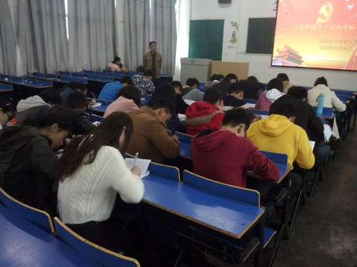 11月16日中午,基础医学院于思贤楼阶梯教室五举行第124期入党积极分子结业考试,基础医学院的26名入党积极分子培训班学员参加考试,学生党支部书记张波到场监考。