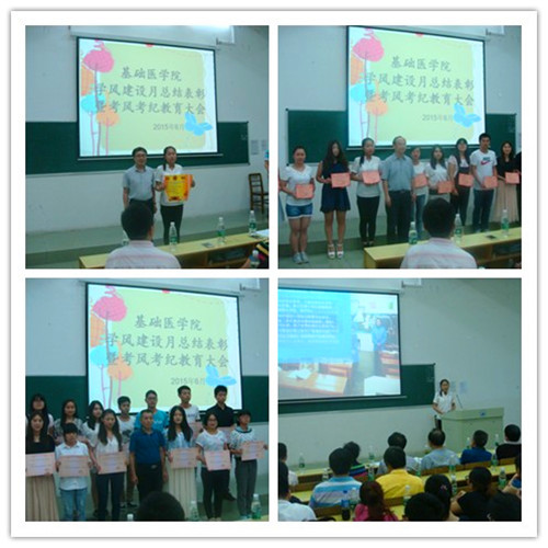 副院长汪鑫宣读了获得基础医学院“十佳医学生”名单。学院领导为获得十佳医学生、优良学风班、国家奖学金及国家励志奖学金的同学们颁发了荣誉证书,并合影留念。