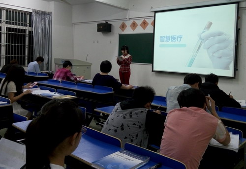 为了让医学生深入理解2015年依法维护医疗秩序、构建和谐医患关系的精神和内涵。4月26日晚,基础医学院A1421班在华文楼301召开了“智慧医疗”主题班会。班主任何翠媛参加了班会。