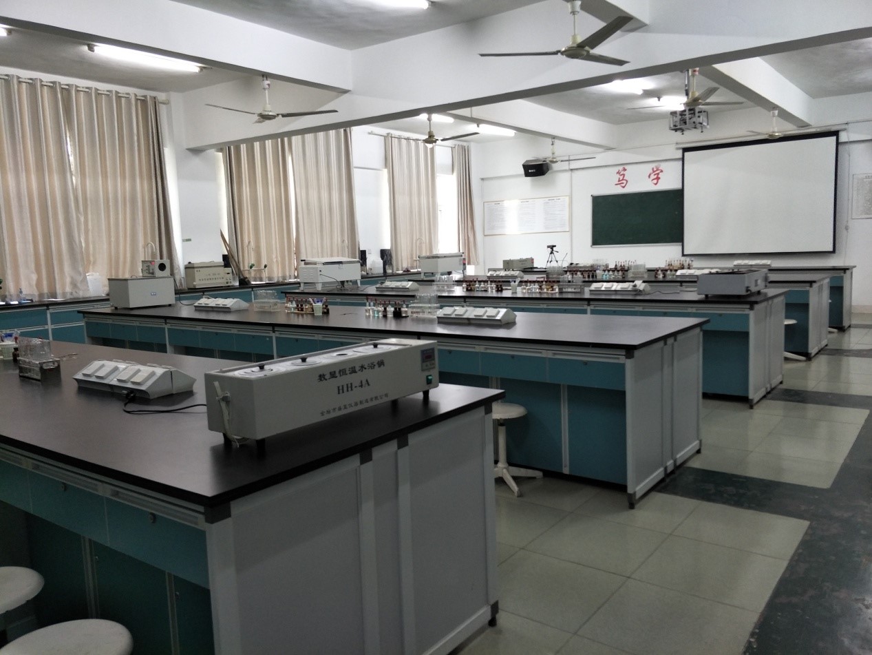 分析检测实验室先后承担基础医学院、护理学院、药学和生命科学院的本、专科临床医学、护理学、药学等11个专业和留学生的生物化学、分子生物学、生物化学检验、细胞生物学、分子生物学检验等实验教学任务。开展了血清蛋白醋酸纤维素薄膜电泳,温度、pH、激活剂和抑制剂对酶活性的影响,721分光光度计的使用与血糖的测定,血清总胆固醇的测定,酮体的生成及其定性、培养细胞的形态观察和计数、蛋白质SDS-聚丙烯酰胺凝胶电泳、琼脂糖凝胶电泳、质粒DNA提取、基因组DNA的提取定量及电泳、目的基因的PCR扩增等43个实验项目。每学年学时达1600学时,学生人时数为25000。