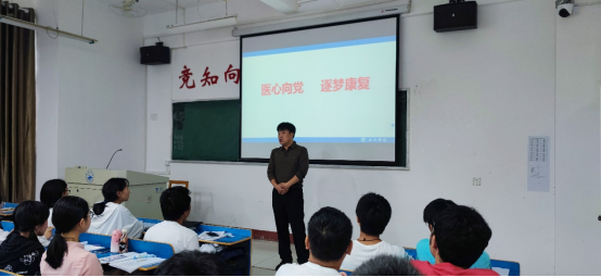 课堂中,向教授还举了个生动例子:人体结构与功能失衡,就犹如机器的螺丝松了,临床康复工作者凭借自己的专业判断,使用专业技术把松垮了的螺丝重新拧紧以便恢复功能。向教授勉励2023级新同学,把个人追求与民族复兴的责任担当紧密相连,为实现中华民族伟大复兴贡献青春力量。广大新生要坚定远大理想信念,继承和弘扬九江学院优良传统,铭记“竞知向学、厚德笃行”校训精神,践行“医心向党、逐梦康复”专业精神,自觉肩负起专业使命和时代责任,在祖国最需要的地方,为国家发展、民族复兴挥洒汗水和青春,在奋斗中增长才干、实现价值、生动展现新时代青年的风采。同学们听完后纷纷表示要珍惜自己医学生的校园学习生活,努力学习,锻炼好身体,做一个合格的医学接班人。