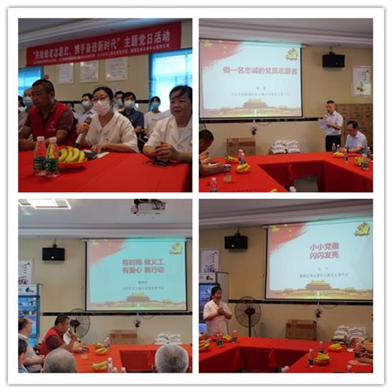 为进一步学习贯彻习近平新时代中国特色社会主义思想,深刻学习领悟习近平总书记关于志愿服务和尊老爱幼指示精神,6月11日上午,三亿平台学生党支部联合九江学院附属医院心脑内分泌党支部、九江市义工联合会党支部和濂溪区南山老年公寓党支部,在南山老年公寓开展了“共绘助老志愿红,携手奋进新时代”主题党日活动。