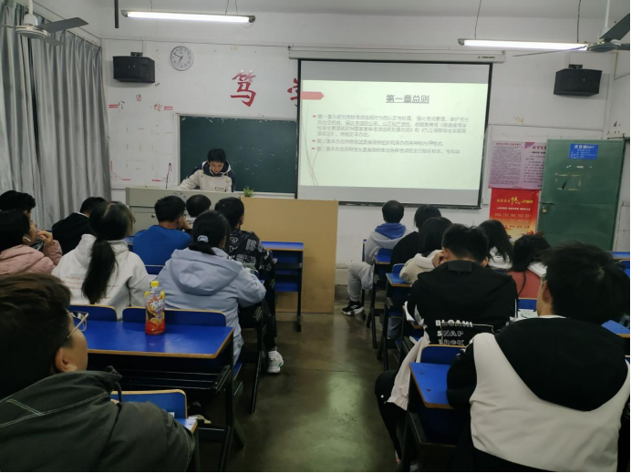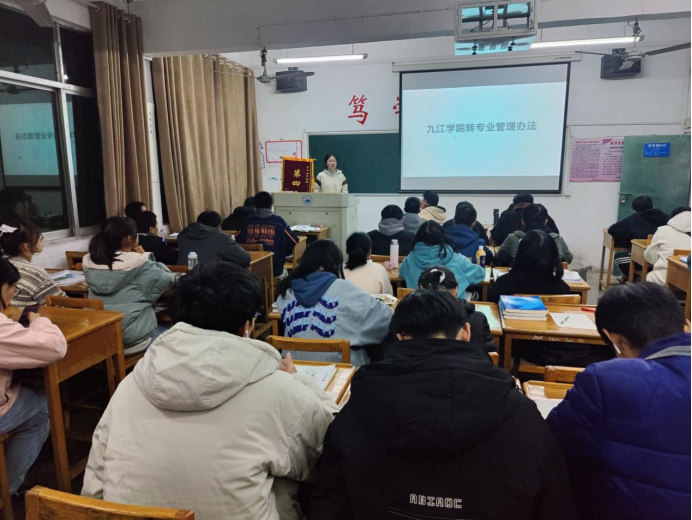 在会上,各班学习委员首先带领大家集体学习了《九江学院学生考试违规处理办法》,之后学习委员介绍了本班学风建设的情况以及本人关于学风建设的看法。同学们进一步了解了考试违规的认定、处分程序与严重后果,这使大家深刻认识到考试规则的禁区,充分意识到考试纪律严明,不容逾矩!大一班级还学习了《转专业管理办法》,使同学们进一步了解转专业的时间、人数、要求。各班同学感悟颇多,其中,A2115班许伟豪同学感悟到:“一定要规范考试纪律,做一个诚信的考生。同时转专业事宜的学习给予了自己很大的帮助,让自己迷雾重重的学习之路豁然开朗。”