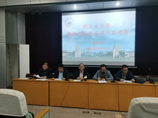 为进一步加强师德师风教育,建立健全优良教风学风建设的长效机制,10月14日,医学院在浔东立本楼报告厅召开职工大会,举行教风学风建设学年启动大会。医学院党政班子成员出席大会。会议由学院党委书记许晓源同志主持。