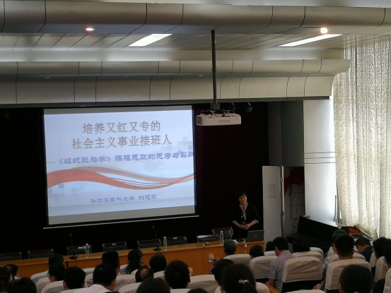 刘慧雯教授的讲座名称是《组织学与胚胎学》课程思政的思考与实践。以生动翔实的案例展示了哈尔滨医科大学在课程思政中取得的显著成绩,分享了素材收集、思路编排中的宝贵经验,为我院教师开启课程思政提供了难得的借鉴作用。