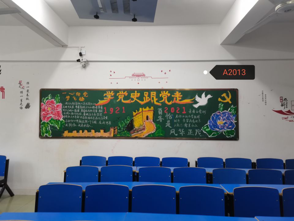 本次活动以班级为单位,评选内容主要包括班级“四史”学习成果展示栏、“党史”主题黑板报、清洁教室卫生等多个项目。同学们积极参与活动,投入大量热情。同学们在黑板报、手抄报、展示栏上大显身手,给文明教室留下了一道道亮丽的风景。同学们用粉笔书写出“党史精神”的内涵重点,用油墨描绘出“党史精神”的具体表现,用照片呈现出“四史精神”的深刻含义。黑板报主题鲜明、内容丰富、图文并茂;展示栏形式多样、耳目一新、别具匠心;教室卫生干净整洁、井然有序。每一项作品都饱含了同学们对祖国的真心与热情。