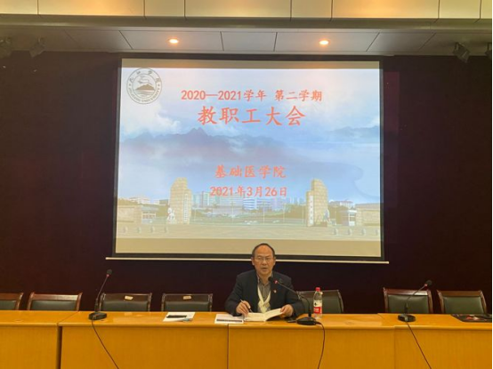 3月26日下午,基础医学院在浔东立本楼三楼报告厅召开全院教职工大会,传达布置学校近期相关工作。院长车向新同志主持会议。