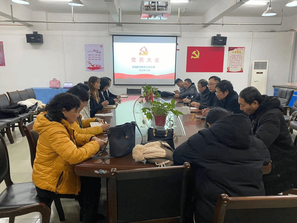 12月18日,基础医学院学生党支部在华文楼105会议室召开支部大会。基础医学院学生党支部全体党员参加活动,党委书记余朝阳作为联系支部领导到会指导,活动由党支部书记黄涛主持。