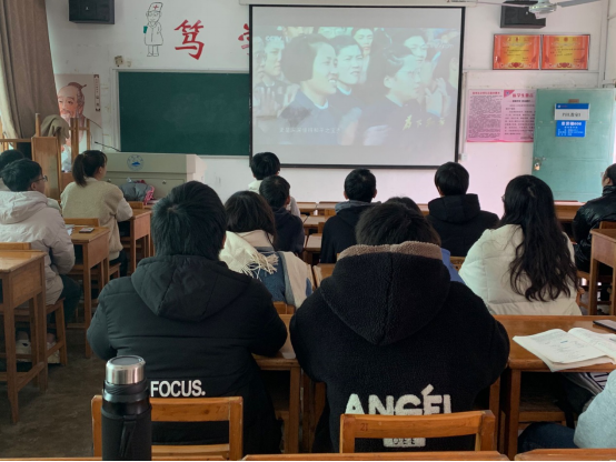随后进入班会的主要阶段,全体师生一同观看大型电视纪录片《为了和平》第一集——正义担当。