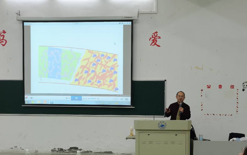 为了此次学术讲座的顺利开展,车向新做了精心的准备,整场讲座以全英文的形式围绕他的课题展开。他首先通过PPT为大家展示了课题的内容和成果,以其丰富的临床教学、实践经验,与同学们分享了课题研究的经过。同时,他还结合自身经历讲述了课题研究的难度。