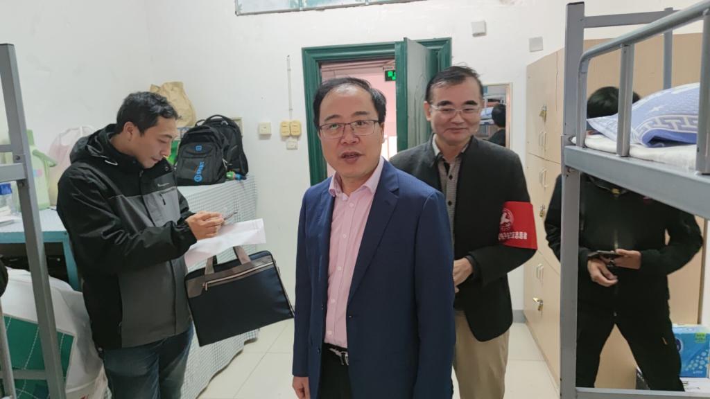 老师们严格遵守疫情期间寝室进出规则,在下寝室之前先到宿管处登记并量测体温。随后走访了各个寝室了解同学们的宿舍卫生情况,并一再提醒大家不要使用违章电器,注意用电安全,要提高安全意识。在检查过程中,老师们一丝不苟,切实得履行好职责担当,牢记“立德树人”的根本任务。老师还和同学们进行耐心细致交流,仔细询问同学们是否适应大学生活、学习生活中有没有遇到实际困难,并且给予同学们一些建议。同时余朝阳书记还叮嘱同学们做好寝室的设计和布置工作,保持干净整洁的卫生环境,营造出积极向上的学习氛围。