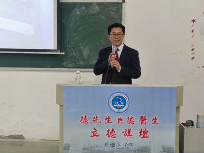 10月28日晚,基础医学院在华阶二教室举行了2020年第一期“德先生与德医生”立德讲坛,邀请了柴桑区人民医院刘光胜院长担任本期主讲嘉宾。讲座由基础医学院副院长许晓源主持,200余位师生一同聆听了刘光胜院长的精彩演讲。