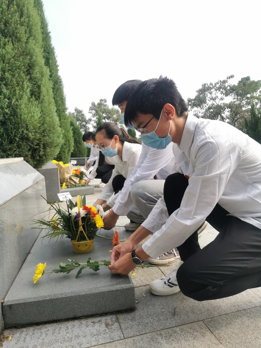 10月1日,为弘扬爱国主义精神,深切缅怀革命先烈们为实现中华民族伟大复兴事业而英勇献身的革命精神并瞻仰他们的丰功伟绩,基础医学院学生代表来到南山公园为革命烈士们献花。