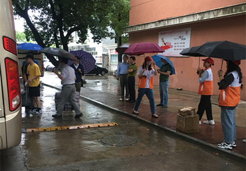 早晨7时许,搬迁工作正式开始。各班把行李放到指定地点,按照班级顺序有条不紊地把行李搬上车。在雨中,各位领导老师多次帮助同学们搬运行李物品上车,并与同学们亲切交谈,鼓励大家尽快适应新校区新环境,安心学习。在此过程中,同学们都发扬互帮互助、团结友爱的精神,男同学主动承担沉重行李的搬迁任务。最后,到庐峰校区后,新任班主任于门口迎接同学们。